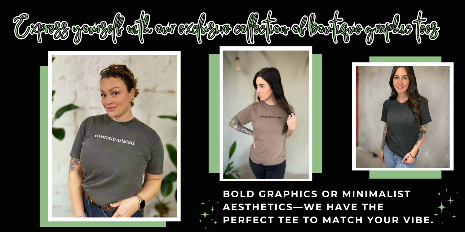 Let us become your go-to destination for stylish, on-trend graphic apparel and accessories. Explore our collections and discover the perfect pieces to showcase your style!